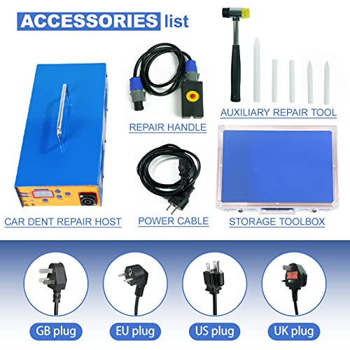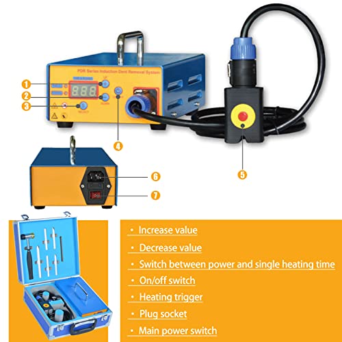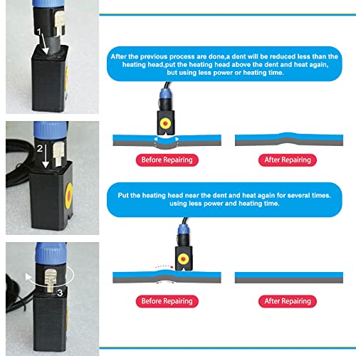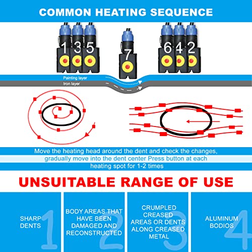 SNELLE REPARATIE EN GEEN SCHADE AAN KLEUR – Uitdeukset voor carrosserie verwarmt snel en intensief de carrosseriedeuk door de elektromagnetische inductiehendel tijdens het reparatieproces, kan zachte deuken op metalen oppervlakken binnen 30 seconden repareren en zal het lakoppervlak niet beschadigen. worden gebruikt op aluminium!)